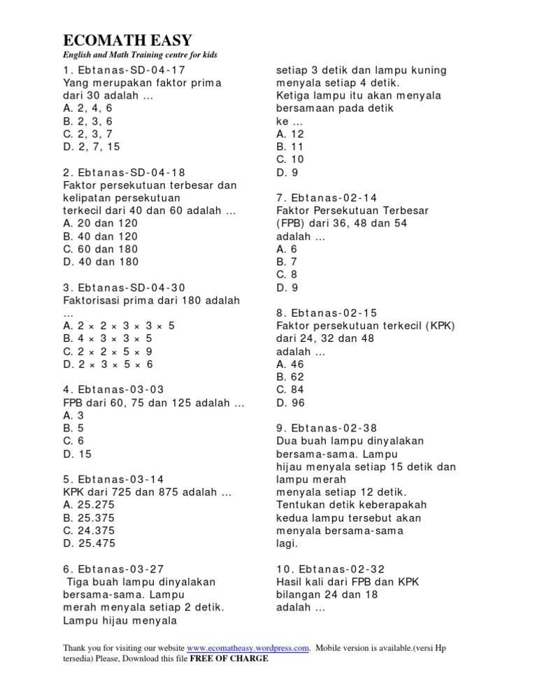 Faktor persekutuan dari bilangan 24 dan 36 adalah. Fpb dan kpk faktor persekutuan terbesar (fpb) fpb merupakan faktor paling besar dari gabungan beberapa tentukan fpb dari bilangan 20 dan 30. Tentukan kpk dari bilangan 12 dan 30. Ibu ingin menaruh buah tersebut ke piring dengan jumlah sama rata. Karena kpk, kita ambil semua angka di sebelah kiri.